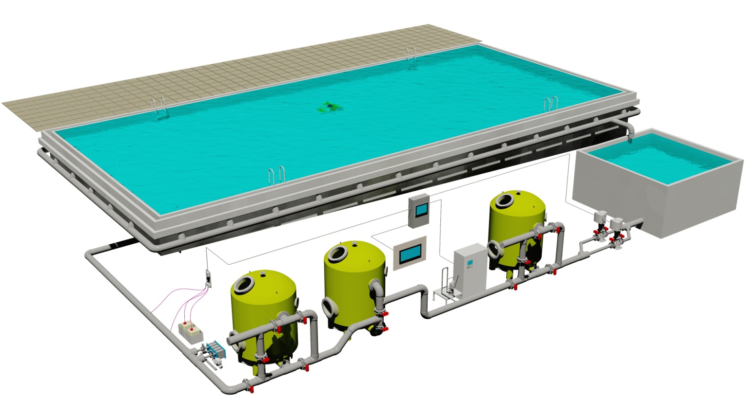 Если система Sewec Smart Control используется в водоподготовке бассейна, то это позволяет полностью автоматизировать такие процессы как: