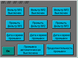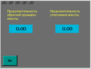 Меню установки значений обратной промывки и уплотнения фильтров