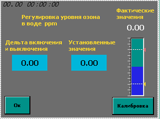 Меню установки макс. значения уровня озона в воздухе и индикация фактического значения.