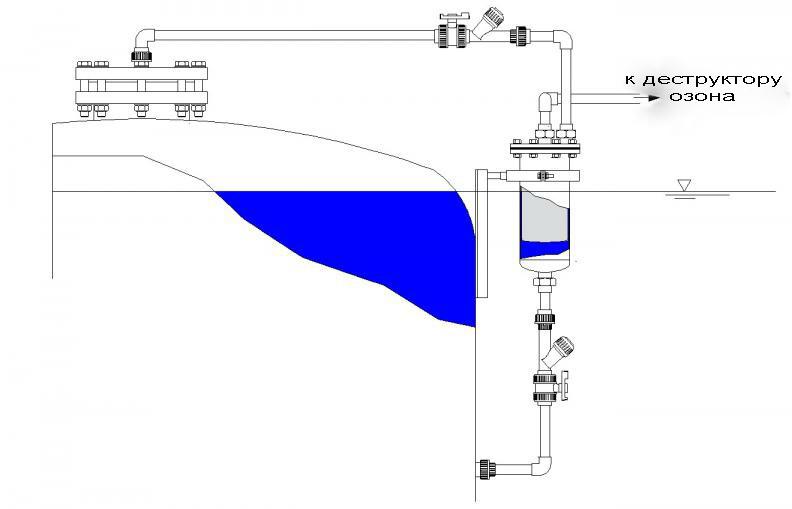 Монтаж осуществляется посредством хомутов (Ø.160мм). Уровень жидкости в деаэрируемой емкости определяется высотой установки.